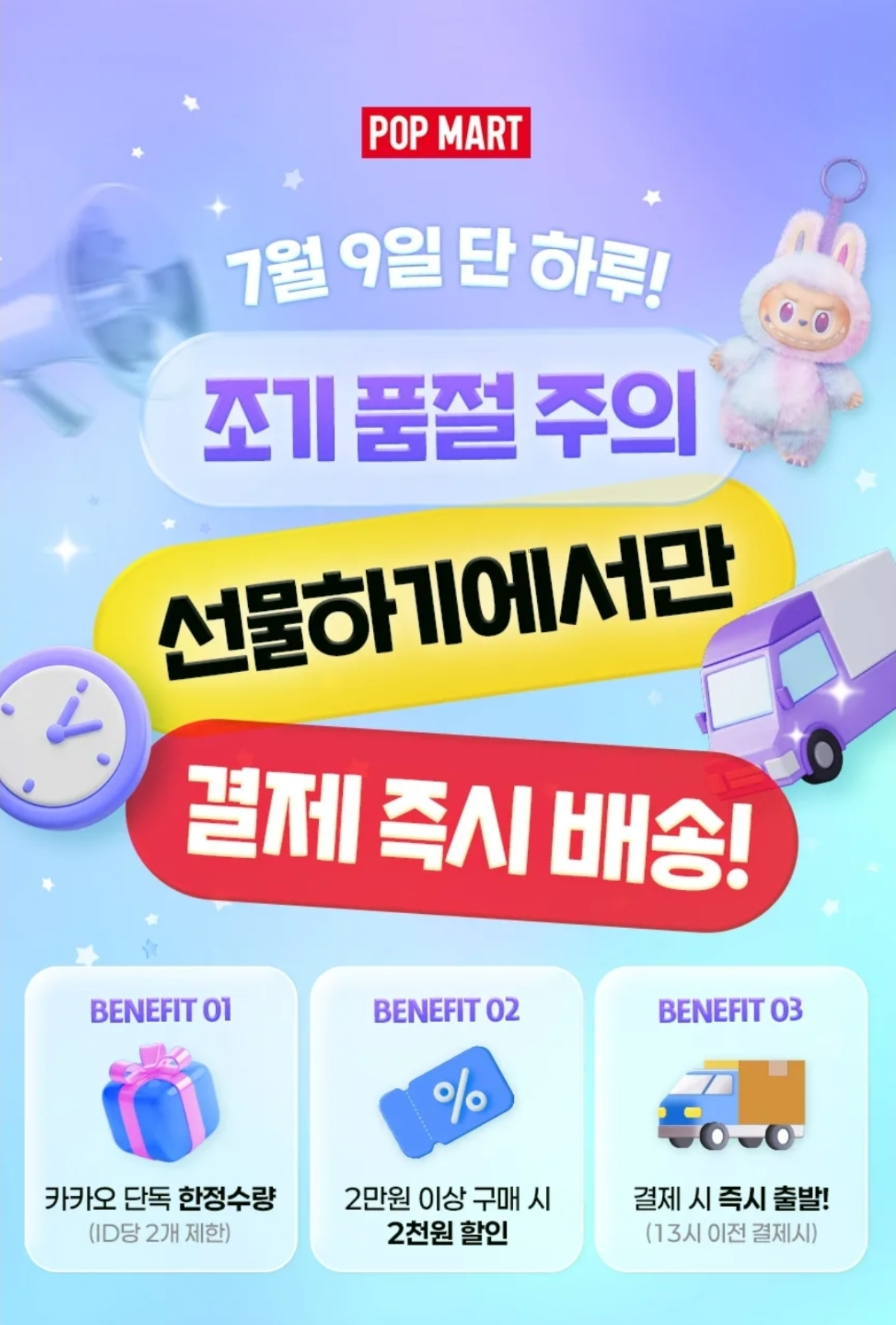 A. 팝마트 측은 과거 '오픈런'으로 인한 안전사고 우려로 오프라인 판매를 중단한 바 있습니다. 이번 '카카오톡 선물하기'가 한정 수량 단독 판매인 만큼, 당분간 다른 경로로 구하기는 어려울 것으로 예상됩니다.