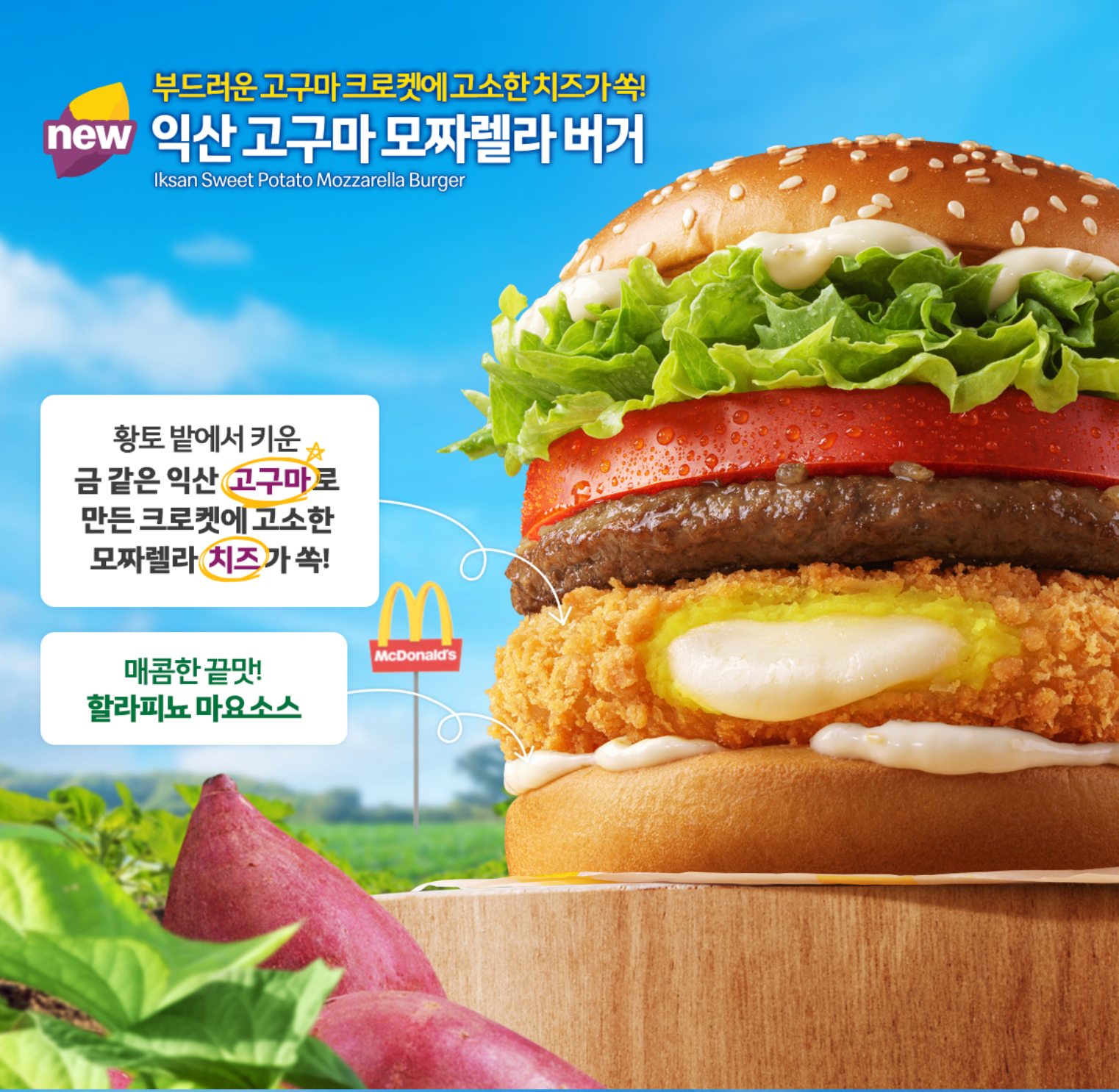 A. 아니요, '익산 고구마 모짜렐라 버거' 역시 '한국의 맛' 프로젝트의 일환으로 출시된 한정 판매 메뉴입니다. 굿즈 판매 기간과 비슷하게 재료 소진 시 판매가 종료될 수 있습니다.