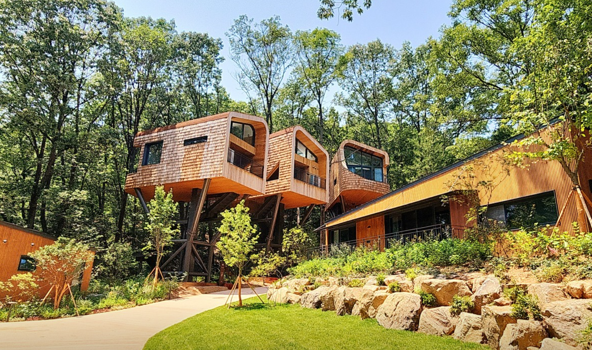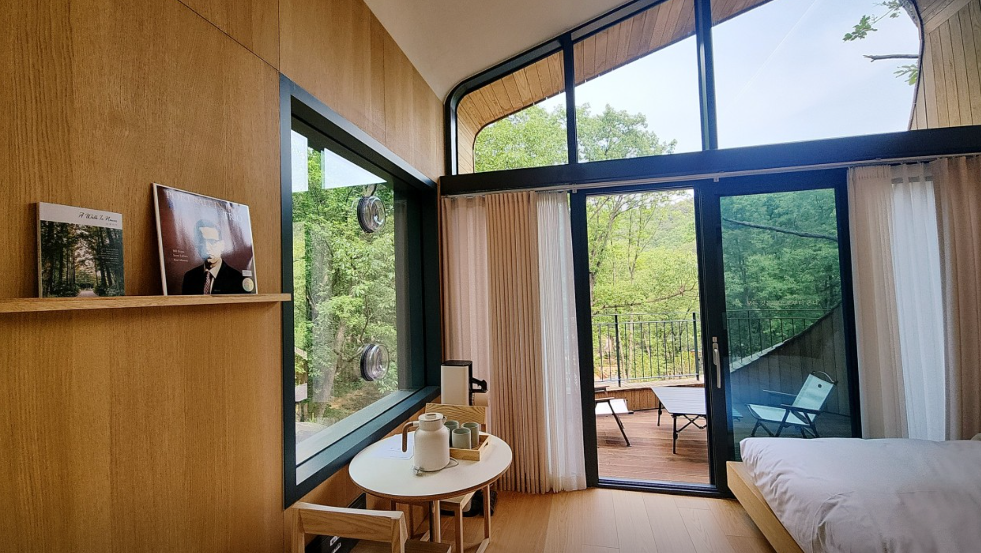 - 트리하우스 (3동): 지상 14m 높이에 위치해 숲속에 떠 있는 듯한 기분을 선사합니다. 침대에 누워 밤하늘의 별을 감상할 수 있는 특별한 경험을 제공합니다.