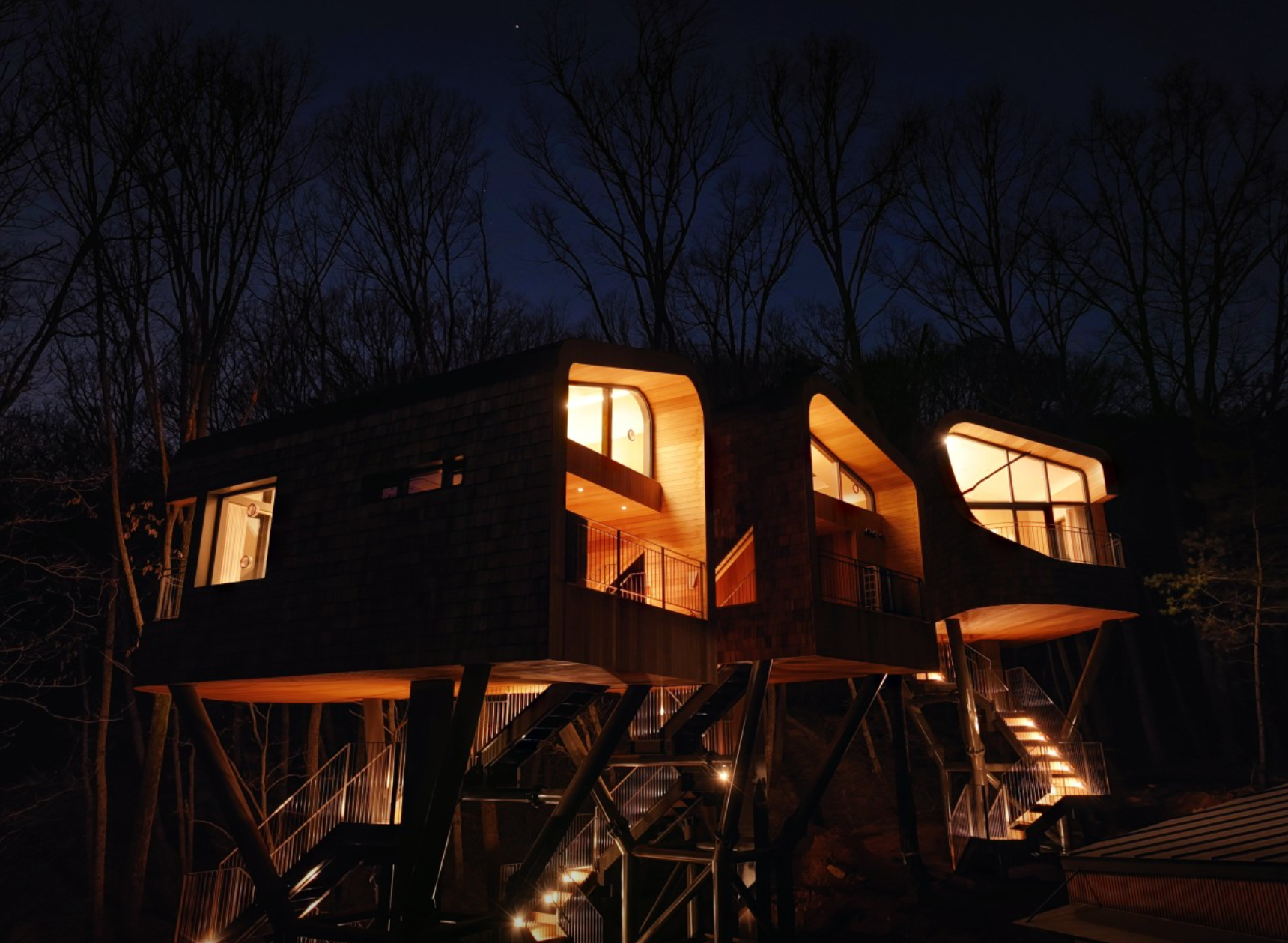 지상 14m 높이에 떠 있는 듯한 '트리하우스'부터