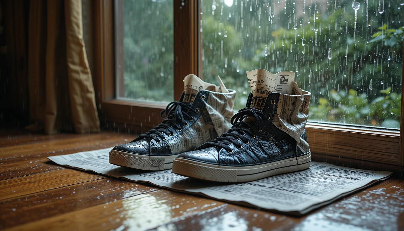 - 속까지 완벽 제습: 신문지를 구겨 신발 안쪽을 빈틈없이 채워줍니다. 신문지가 눅눅해지면 새것으로 여러 번 교체해주세요.