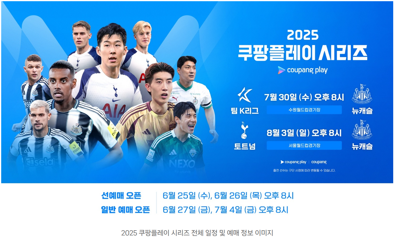 매년 여름, 축구 팬들의 심장을 뛰게 하는 그 소식! 바로 '쿠팡플레이 시리즈'가 2025년에도 어김없이 우리 곁으로 돌아왔습니다. 🎉 작년에도 정말 뜨거웠는데, 올해 라인업은 그야말로 역대급이라고 할 수 있겠네요. '캡틴' 손흥민 선수가 이끄는 토트넘 홋스퍼와, 창단 이후 처음으로 한국을 찾는 뉴캐슬 유나이티드가 맞붙기 때문이죠! 벌써부터 티켓팅 경쟁이 얼마나 치열할지 상상이 가시나요? 저도 벌써부터 달력에 빨간 동그라미를 잔뜩 쳐 놨답니다. 😊