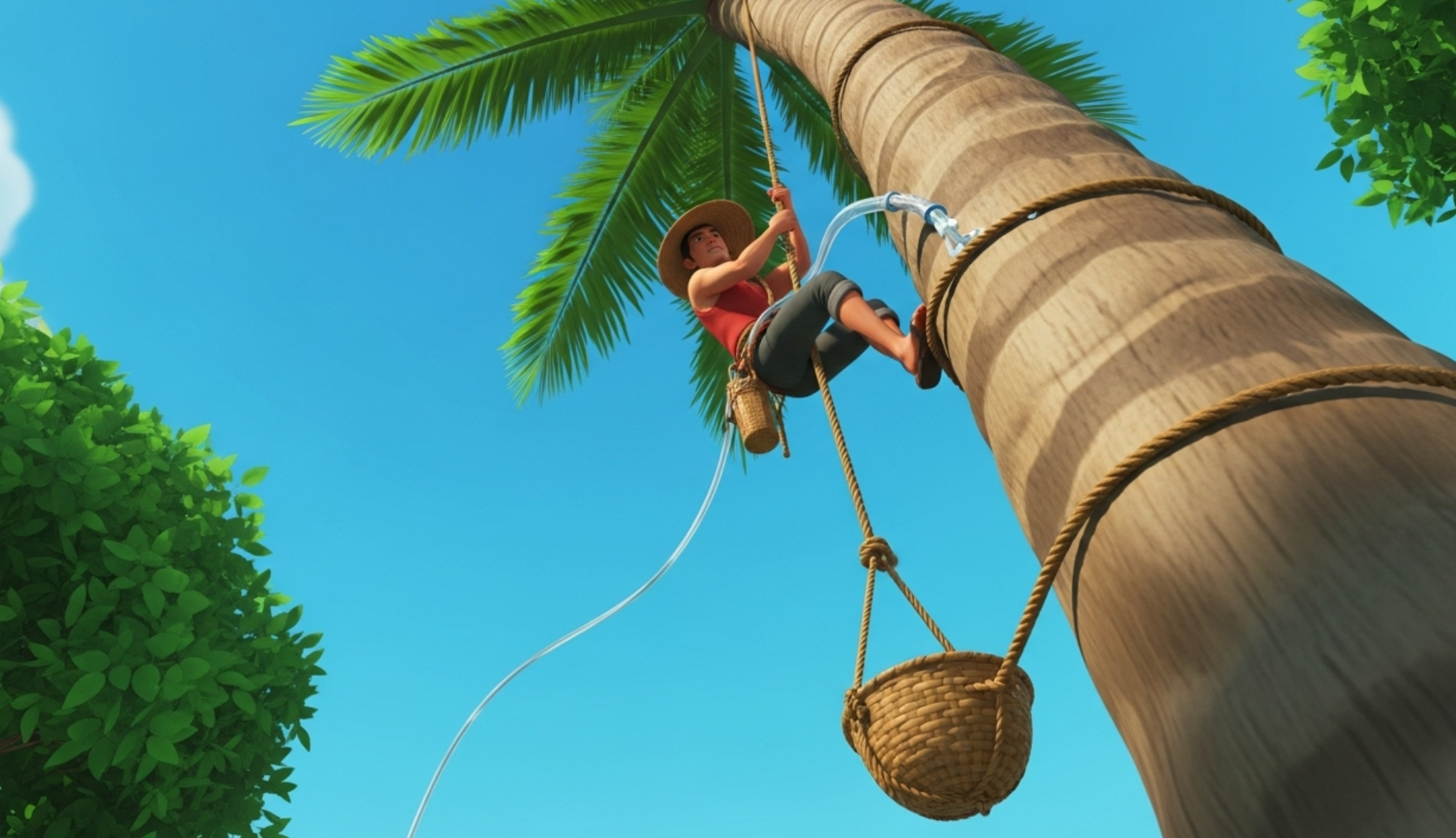 아무런 안전장비 없이 맨몸으로 50m 높이의 야자나무를 오르는 모습은 경이로우면서도 위태로워 보였습니다. 발에는 굳은살이 가득하고 온몸은 상처투성이였지만, 그는 오직 가족의 생계를 위해 아찔한 고공 작업을 멈출 수 없다고 담담히 말했죠. 강한 바람이라도 불면 그대로 추락할 수 있는 위험 속에서 나무와 나무 사이를 연결한 외줄을 타는 모습은 보는 내내 가슴을 쓸어내리게 했습니다.