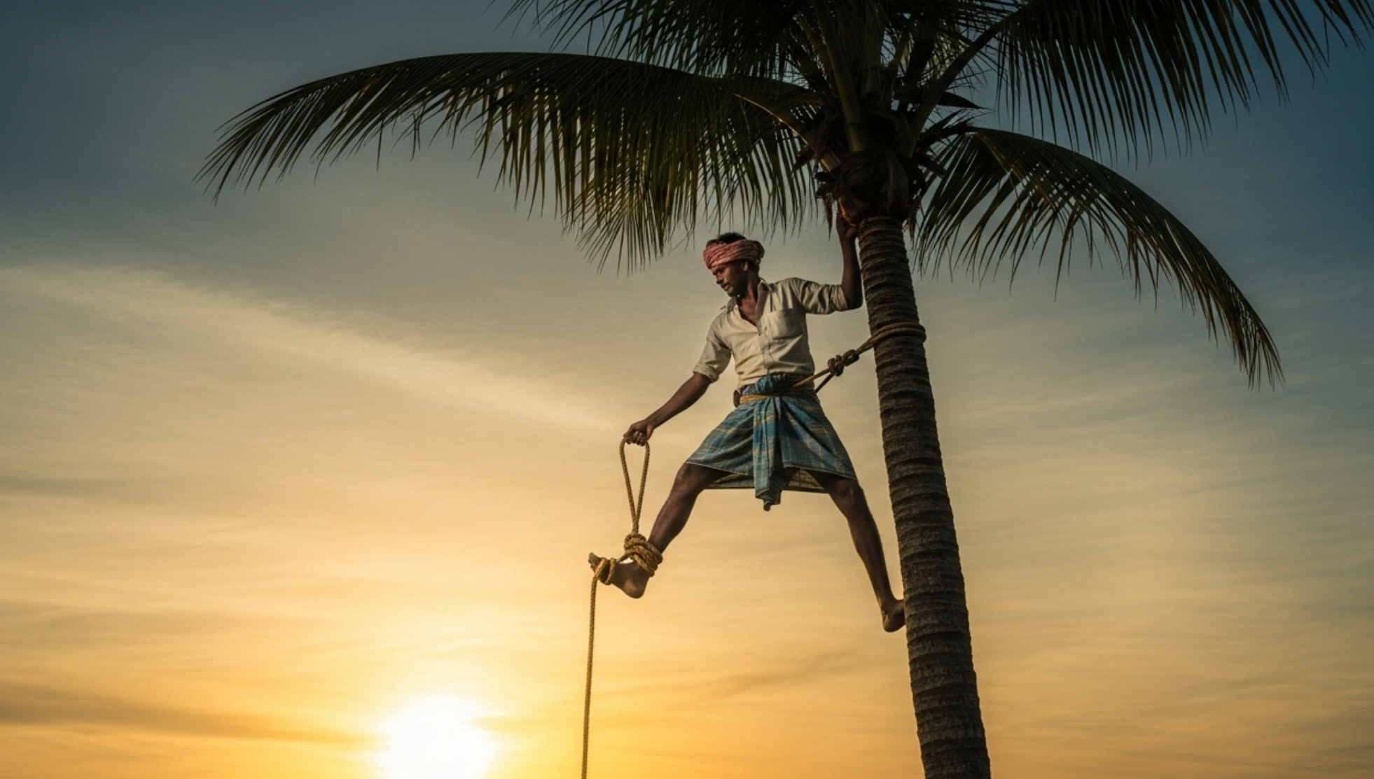 50m 상공, 외줄에 의지한 야자수액 채취꾼 🌴