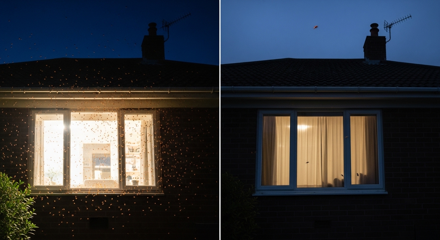 - 빛 차단하기: 러브버그는 밝은 빛을 좋아합니다. 밤에는 커튼이나 블라인드를 쳐서 실내의 빛이 밖으로 새어 나가지 않도록 해주세요.
