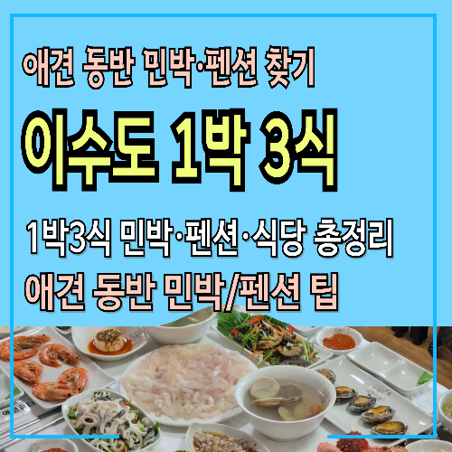 아래는 이수도에서 인지도가 높은 1박 3식 민박들입니다. 애견 동반 가능 여부는 꼭 전화로 직접 확인해보세요.