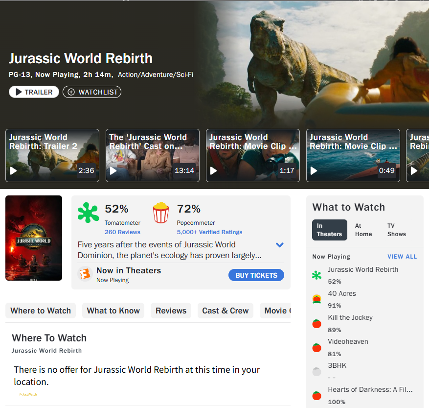 - 네이버 영화 평점: 실관람객 평점 6.67점 (2025.07.07. 기준) 으로, "기존 시리즈와 달라 신선하다", "공룡의 공포가 제대로 느껴진다" 등의 반응과 함께 부정적인 반응이 있습니다.